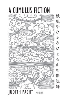 Judith Pacht’s A Cumulus Fiction is "a lucid, turn-on-a-dime ’game‘ of hybrid conversations with ancient haiku becomes, in Pacht’s elegantly compressed idiom, a surprisingly postmodern standoff between the artfulness of death and the inevitability of desire." "Each page of this book of acrostic responses to classic haiku is beautiful to look at, like cumulus clouds— beauty piled on beauty. Calming, meditative, but also, like cumulus clouds, powerful, dangerous, and with brilliant flashes of insight."